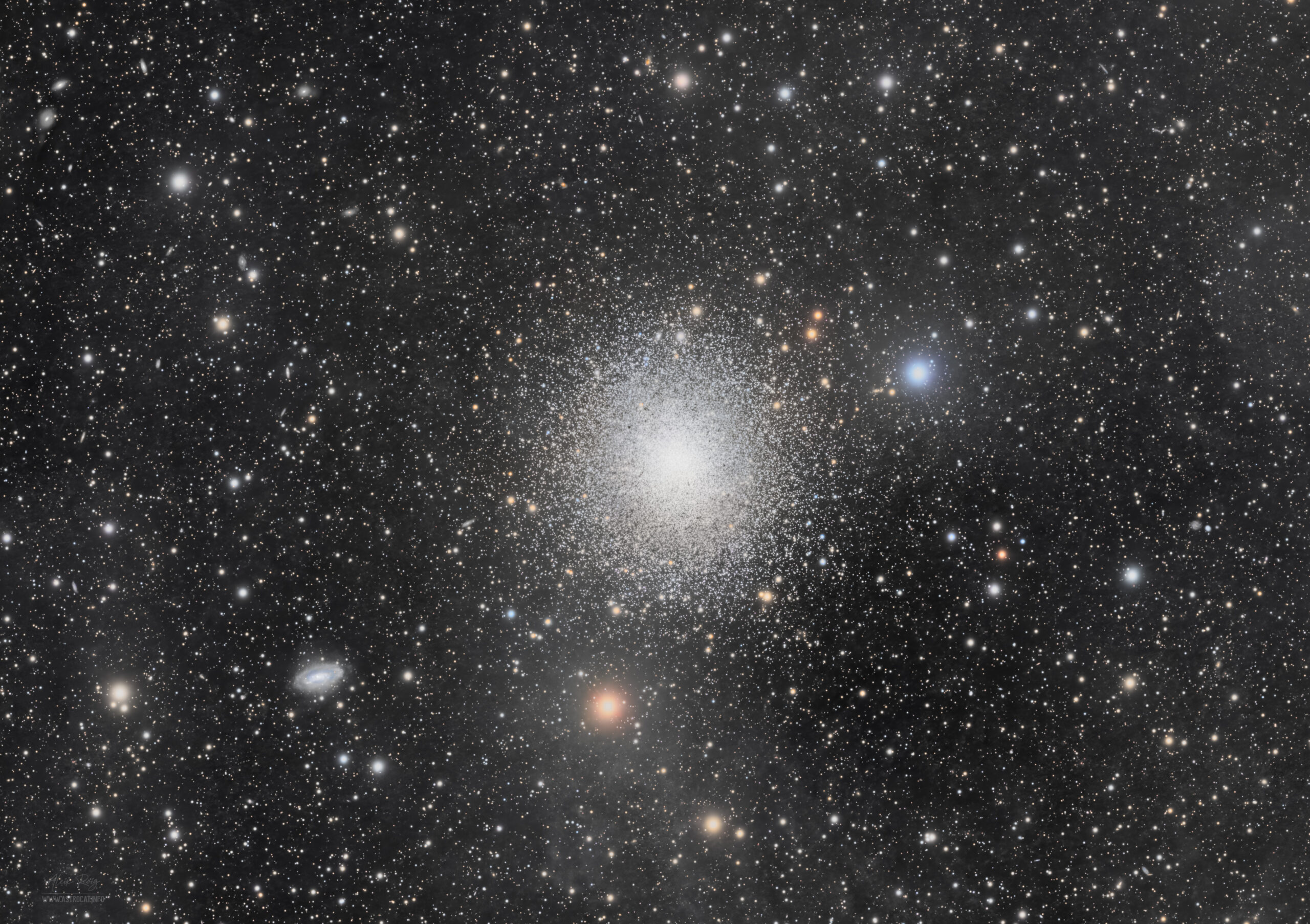 Captured from my backyard observatory in Prades, Catalonia – Spain, the Messier 13 (M13), often called The Great Globular Cluster in Hercules, is one of the most spectacular globular clusters visible from the Northern Hemisphere. Located in the constellation Hercules, it lies approximately 22,200 light-years from Earth and spans about 145 light-years in diameter.
